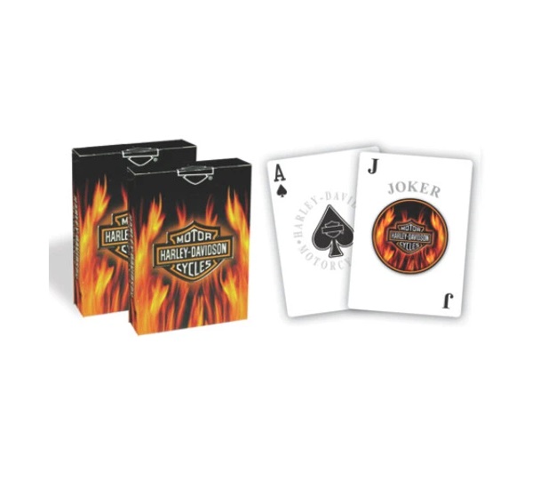 produkt oryginalnyKarty do gry Harley-Davidson Flame są wykonane z trzywarstwowego niemieckiego papieru kasynowego o jakości ze specjalnymi amerykańskimi powłokami o satynowym wykończeniu. Te karty są grubsze i są o wiele trwalsze niż zwykłe karty do gry, co czyni je preferowanym wyborem do gry w pokera i inne gry karciane.