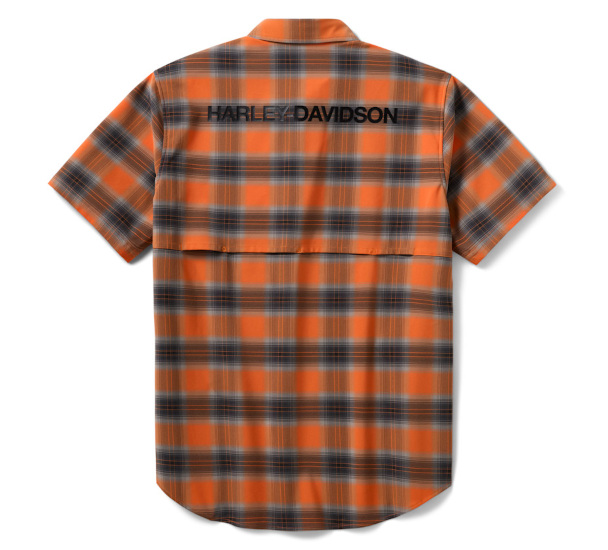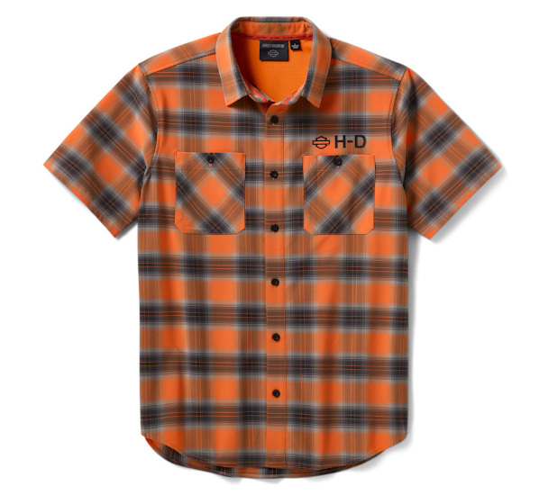 produkt oryginalnyChłód w kratę działa w obie strony, gdy nosisz naszą koszulkę H-D® TECH Vented Stretch Comfort. Jest wykonana z lekkiej mieszanki rozciągliwej w czterech kierunkach, która odprowadza wilgoć i porusza się razem z Tobą. Ta męska koszula z krótkim rękawem zapinana na guziki jest również wyposażona w siateczkowe wstawki wentylacyjne, które zapewniają chłód, oraz ukryty kołnierzyk zapinany na zatrzaski, który pozostaje pod odzieżą motocyklową. Ten stylowy wygląd zawdzięcza ponadczasowemu kraciastemu wzorowi w naszych kultowych kolorach, wykończonemu nowoczesną grafiką.