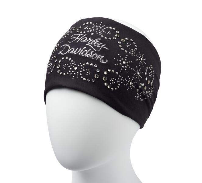 Ten przyciągający wzrok element H-D ma srebrne wypukłe ćwieki, cyrkonie i metaliczne hafty.